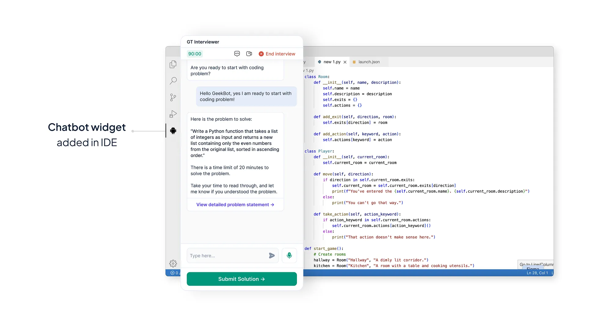 Once the user understood the problem, they can click on the “Start coding” button presented by the AI Interviewer to bring up the IDE.
