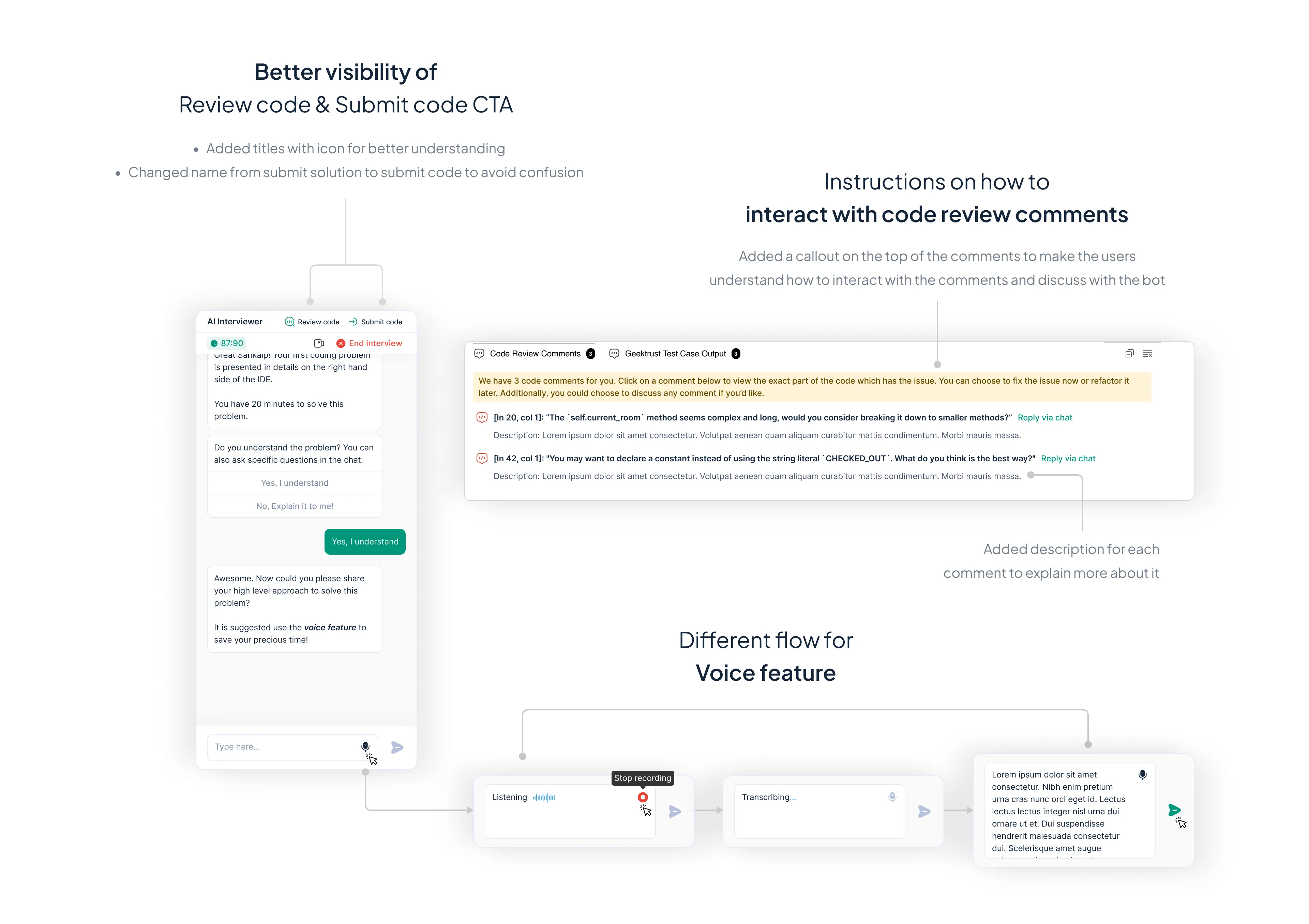 Since voice interaction was a key feature in our product for assessing candidates’ communication skills, I decided to prioritize it.