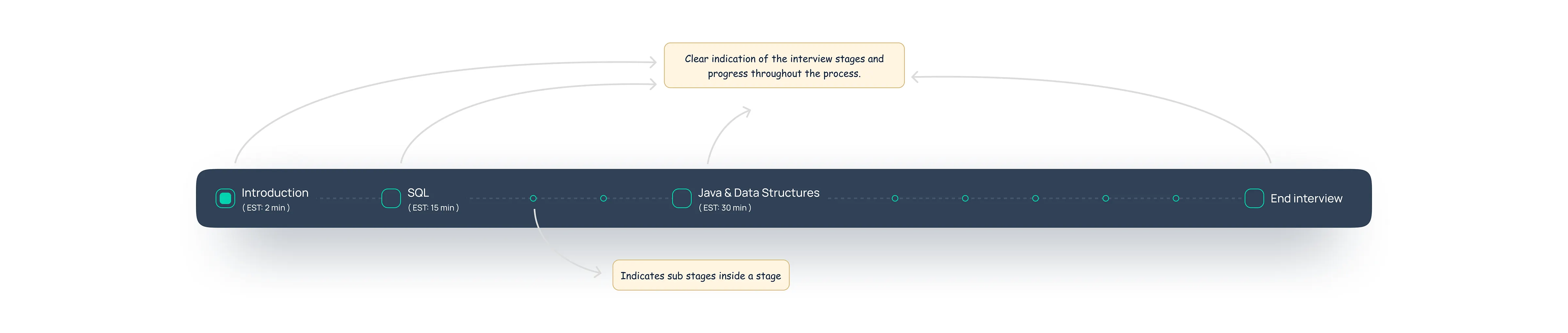 Based on user feedback and observing their struggles with the flow and lack of awareness about their current stage in the interview process, we decided to improve transparency.