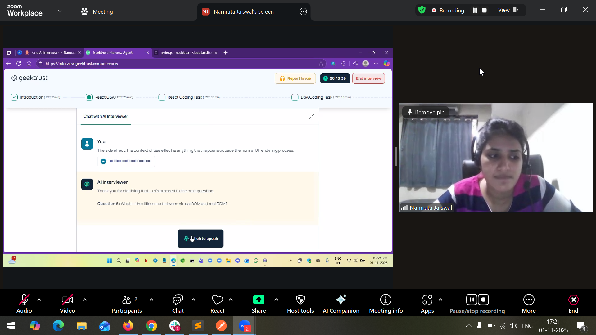 ✔ one for normal conversation with the AI Interviewer and
